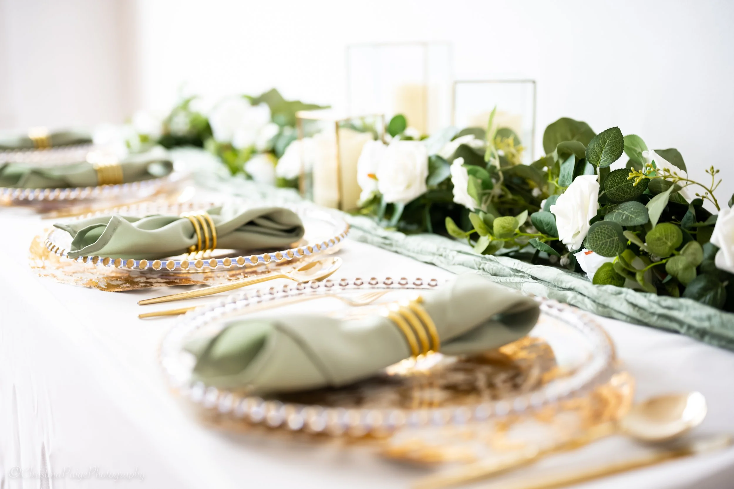 Curated chargers, linens, candle holders, and more. Available à la carte or as fully styled packages.